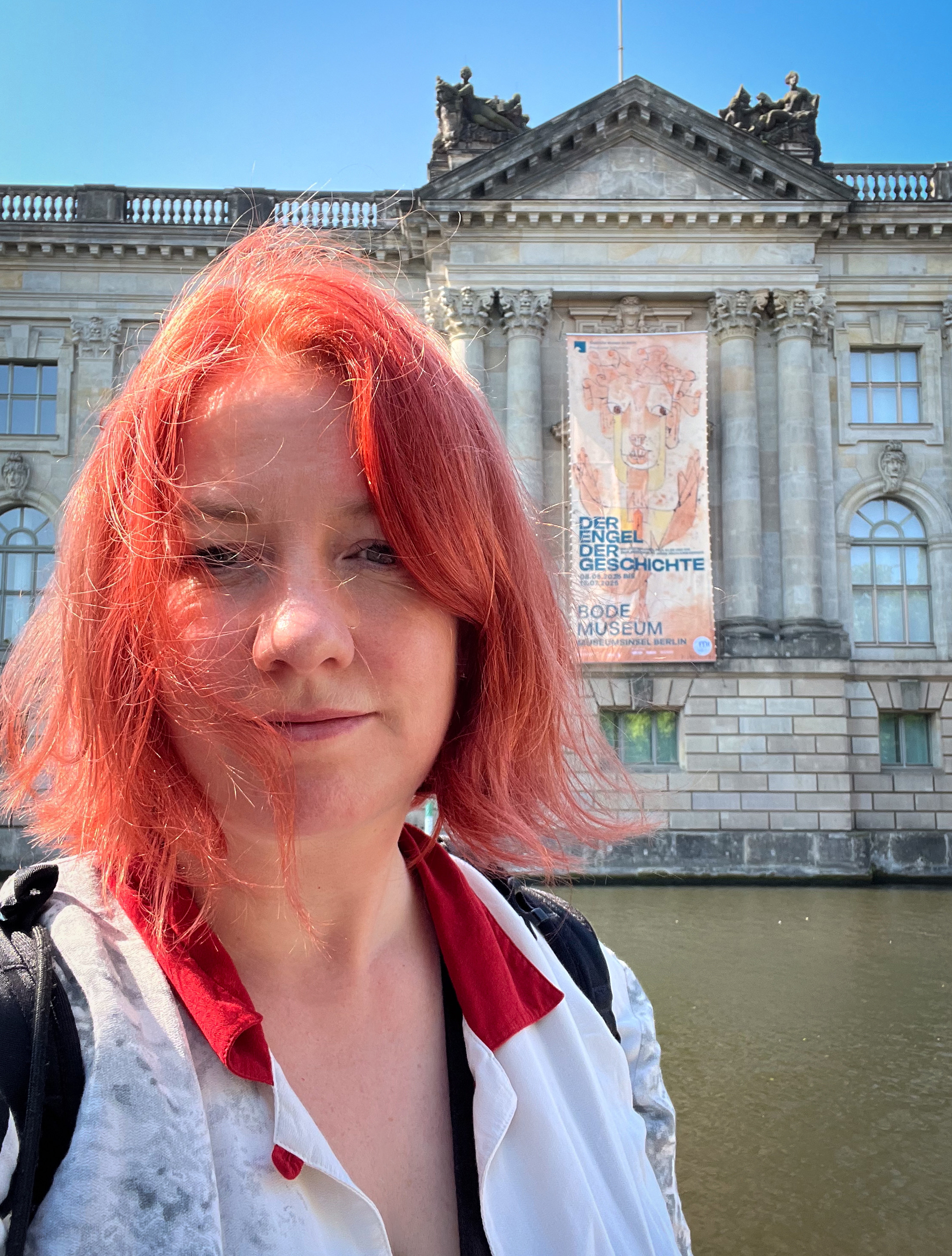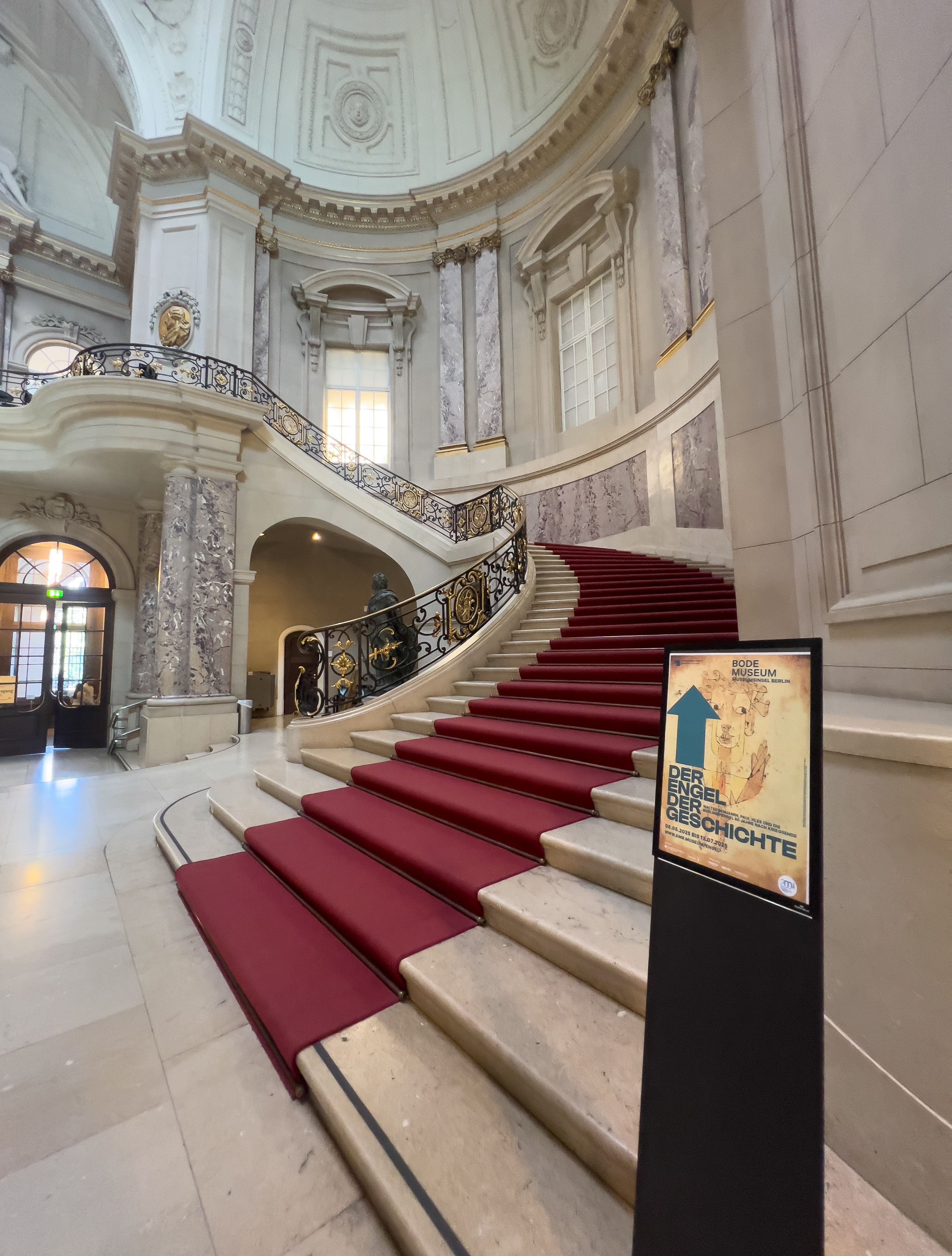 I knew that Benjamin’s Angel is inseparable from Paul Klee’s 1920 monoprint Angelus Novus, which Benjamin acquired in 1921 and kept with him ever since. Benjamin’s philosophy of the Angel was inspired by that print. But during my many years of working with the Angel, I had never seen Paul Klee’s original Angelus Novus in person: the print is considered ‘fragile,’ and is usually kept safe in the Israel Museum’s archives. However, during the summer of 2025, the Angel was on display at the Bode Museum in Berlin, celebrated as “the return of Berlin’s Angel.” When, in a stroke of luck, I heard about this, I booked the first train out, and went on my way to meet her.